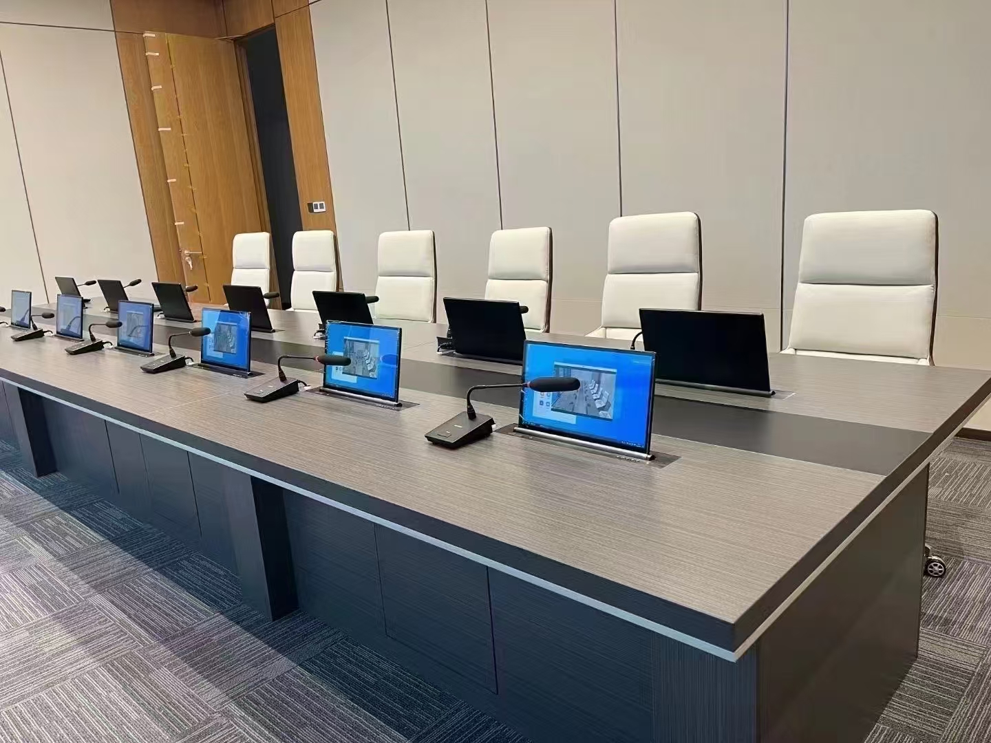 新款馬里胡桃會(huì)議桌,結(jié)構(gòu)采用板式+鋁合金結(jié)合,莊重簡(jiǎn)約、沉穩(wěn)大氣適合多種會(huì)議室裝修風(fēng),顏色可定制